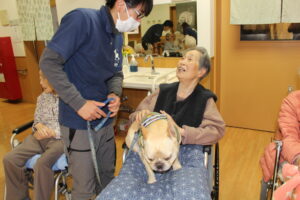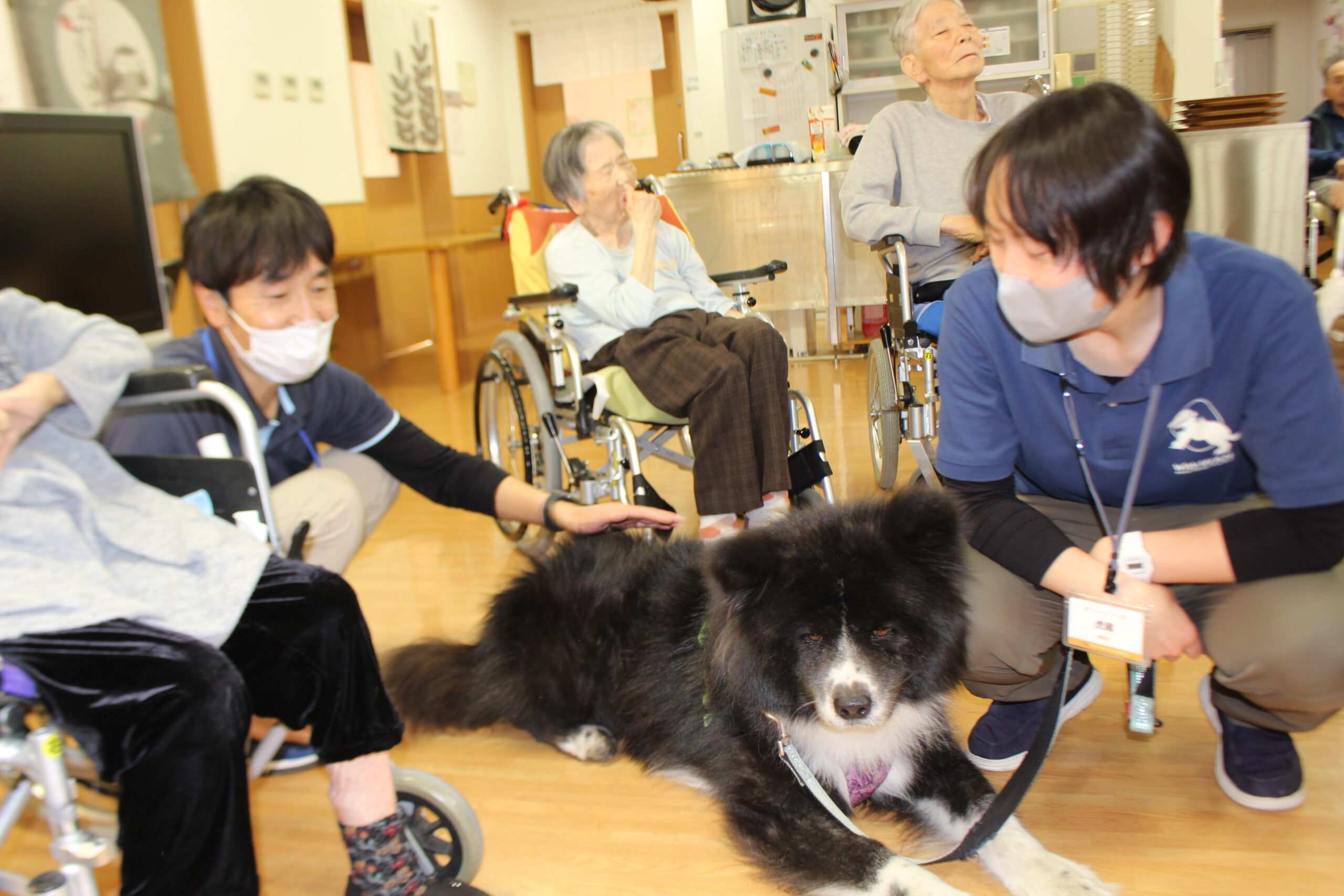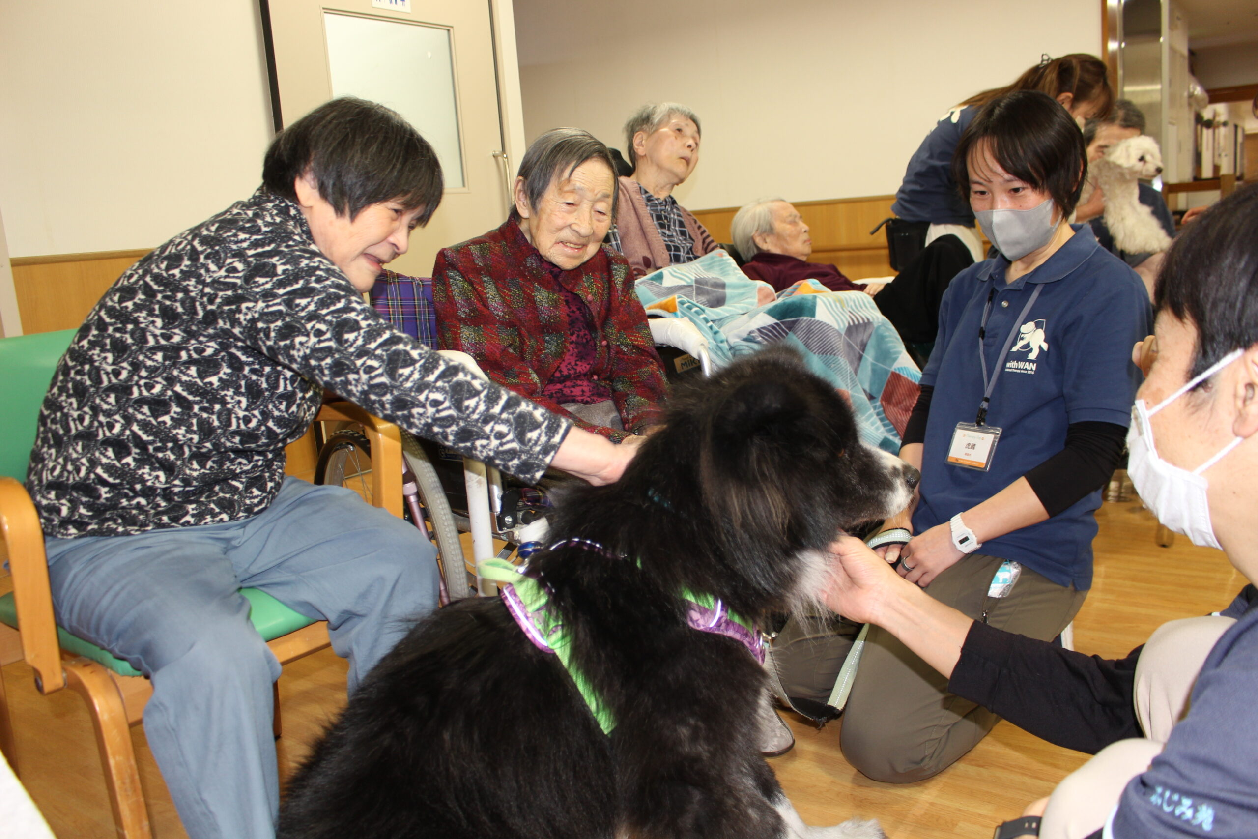 1月29日に、日頃より大変お世話になっているNPO法人アニマルセラピーwithワンさんが4頭のとてもかわいいワンちゃんを連れて来てくれました。 入居者、職員共にとても楽しく、幸せな時間を一緒に過ごさせていただきました。