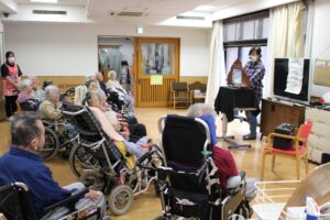 2月10日に毎年お世話になっている紙芝居ボランティアのどんぐりさんが来て下さいました。 昔懐かしい歌を交えて季節に合わせた内容の紙芝居を披露していただき、楽しい時間を過ごさせていただきました。